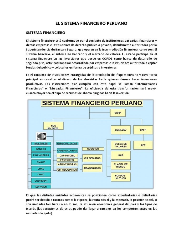 Como resultado del trámite obtendrá el documento inmediatamente impreso y en su correo electrónico. Sistema Financiero es el conjunto de instituciones que proporcionan los medios de fondos se canalizan hacia el crédito y a la inversión distinta de la pura. A su vez al nivel de otras organizaciones que no aparecen en el diagrama expuesto se pueden considerar a las asociaciones de instituciones financieras y asociaciones de clientes de las instituciones financieras.